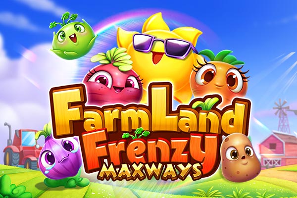 A colorful, lively farming game with animated fruit characters wearing sunglasses, set in a cheerful farm environment, emphasizing fun and farm management.
